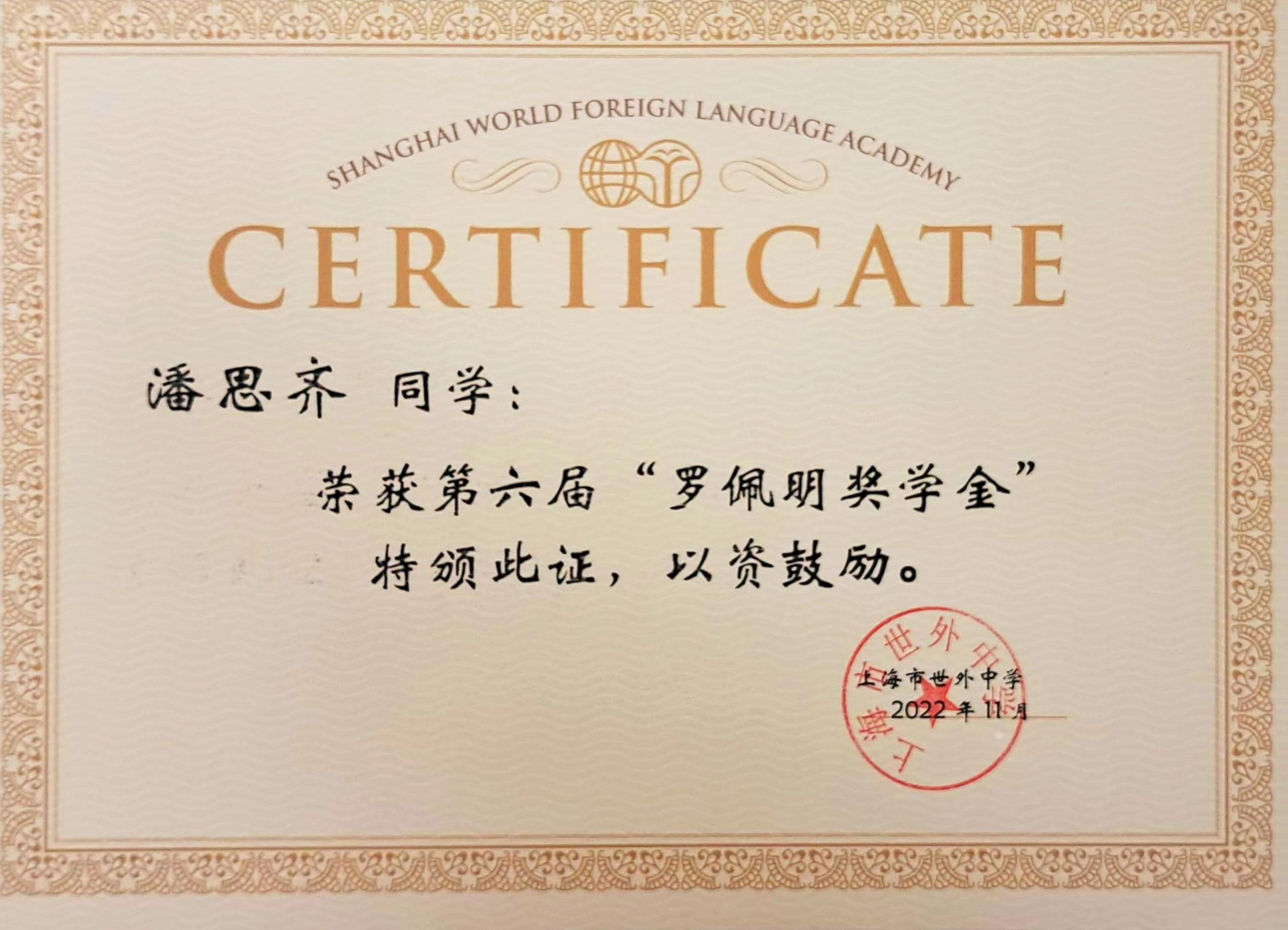 2022 Luo Peiming Scholarship in Shanghai World Foreign Language Academy