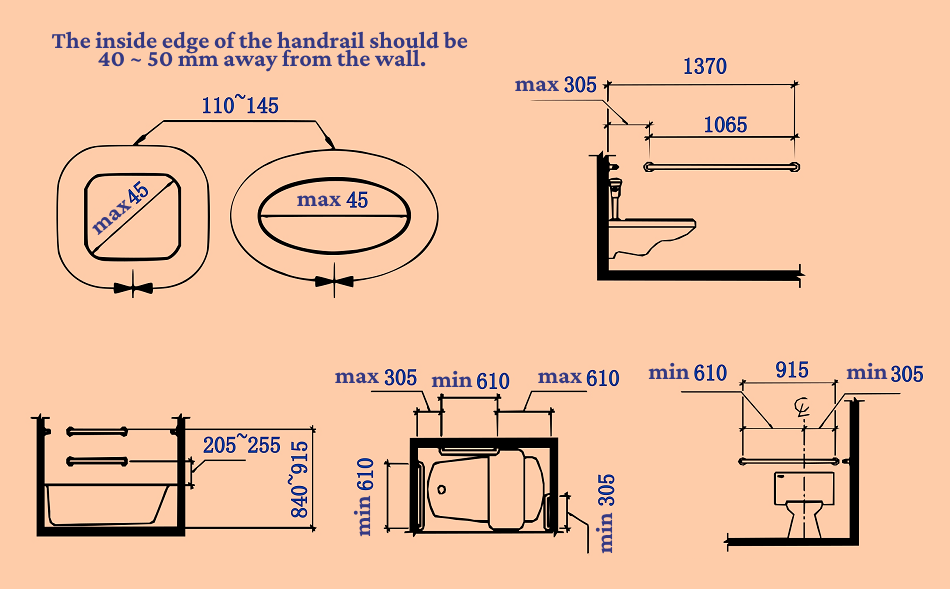Handrail accessibility is designed to assist people with limited mobility or those who need support by providing handrails that help them maintain balance and reduce the risk of falls while moving. Typically, the installation of handrails considers factors such as height, stability, comfort, and ease of grip. Research has shown that installing handrails indoors, especially in bathrooms, can significantly reduce the risk of slipping. Additionally, because handrails are relatively inexpensive and require minimal alterations to the home, they are often prioritized in accessibility modifications.