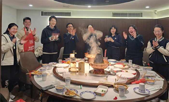 Following the meeting, club members gathered for a meal at a hot pot restaurant to welcome the New Year and to celebrate the end of the semester . For those unable to attend, including Teacher Sun Liang and several members, video greetings were sent to share the happiness. The event concluded with a group photo, capturing the great moment as they looked forward to the year ahead.